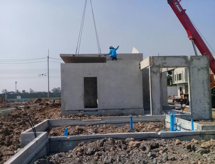 รวมกลุ่มผู้เชี่ยวชาญในสาขาวิชาชีพด้านงาน ออกแบบและงานก่อสร้าง เพื่อให้บริการออกแบบก่อสร้างบ้าน อาคารพักอาศัย หรือสิ่งปลูกสร้างอื่นที่ผลิตรูปแบบ เหมือนกันในปริมาณมาก ๆ บริษัทฯ รับผลิตและติดตั้งโครงการที่พักอาศัยในระบบการก่อสร้างโดยใช้ระบบ ชิ้นส่วนสำเร็จรูปแบบครบวงจรให้กับโครงการต่างๆ ควบคุมคุณภาพของงาน และระยะเวลาในการดำเนินการโครงการ ได้อย่างมีประสิทธิภาพและได้ประสิทธิผล ดำเนินการก่อสร้างให้กับบริษัท พร็อพเพอร์ตี้ เพอร์เฟค จำกัด (มหาชน) และบริษัทในเครือ ซึ่งเป็นบริษัทพัฒนาอสังหาริมทรัพย์รายใหญ่ มีการผลิตชิ้นส่วน และนำไปประกอบติดตั้งเป็นบ้านเดี่ยวพักอาศัย ความสูง 2 ชั้น เป็นจำนวนบ้านมากกว่า 1,600 หลัง